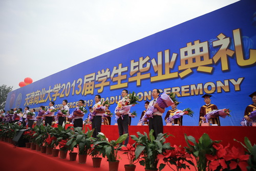 校长刘书瀚,校党委副书记杨万义、史习红,副校长马三津、邱立成、葛宝臻,校纪委书记路波,校长助理、教务处长、研究生部主任、图书馆长、教学质量监控中心主任、各学院院长等导师代表身着导师服出席典礼。各学院书记、副书记、全体辅导员、班主任及教师代表参加典礼,1000 余名家长前来观礼,共同分享全体2013届毕业生学有所成的幸福和喜悦。