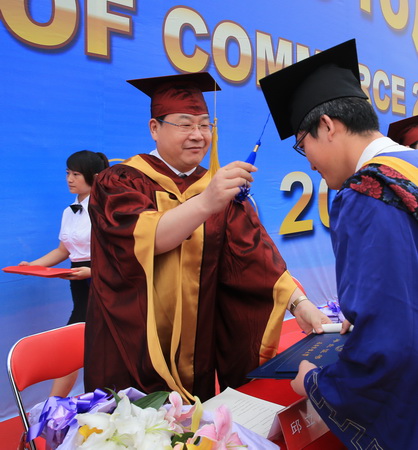 副校长葛宝臻为毕业生颁发毕业证书、学位证书并拨流苏