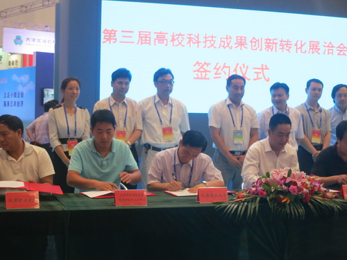 6 月 6 日—8 日,天津市第三届高校科技创新成果转化展洽会在梅江会展中心举行。全市高校90 余项科技成果在展洽会上进行了展示,星空产学研办公室按照市教委精神,在主管校领导的指导下,经过近一个月的精心准备,上报学校教师科技成果项目 6 项,市教委采纳并参展 3 项。