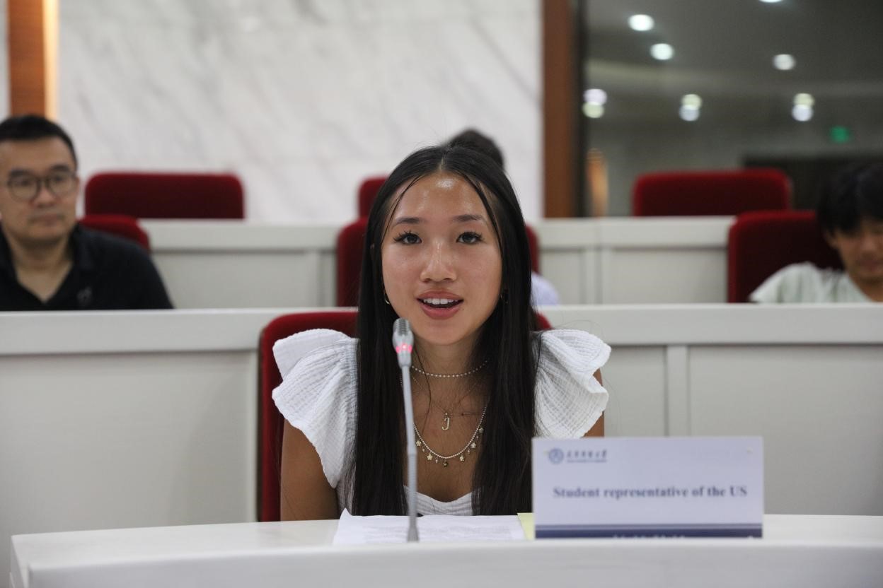 美方学生代表Jennifer发言,表达了对研学之旅的热切期待,感谢星空XK体育提供深入了解中国文化的宝贵平台,并期待与团组成员共度充实而有意义的时光,留下难忘记忆。