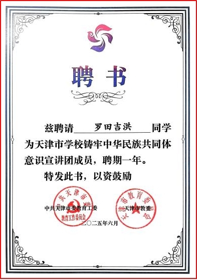 为贯彻落实党的二十届三中全会精神和习近平总书记在全国民族团结进步表彰大会上的重要讲话精神,日前,市教育两委公布天津市第三批学校铸牢中华民族共同体意识宣讲团成员名单,星空经济学院2022级本科生罗田吉洪成功入选。