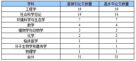 论文被引次数是国际上公认的反映学术影响力的主要指标,本期星空共有51篇高被引论文,分布于9个学科,具体分布情况如下图所示。