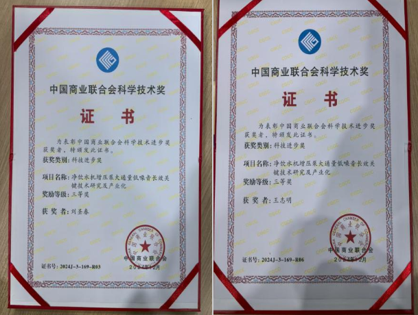 近日,由中国商业联合会主办的2024年度科学技术奖评选结果揭晓,由星空机械工程学院教师刘圣春、王志明联合佛山市顺德区美的洗涤电器制造有限公司等企业共同完成的《净饮水机增压泵大通量低噪音长效关键技术研究及产业化》项目获三等奖。