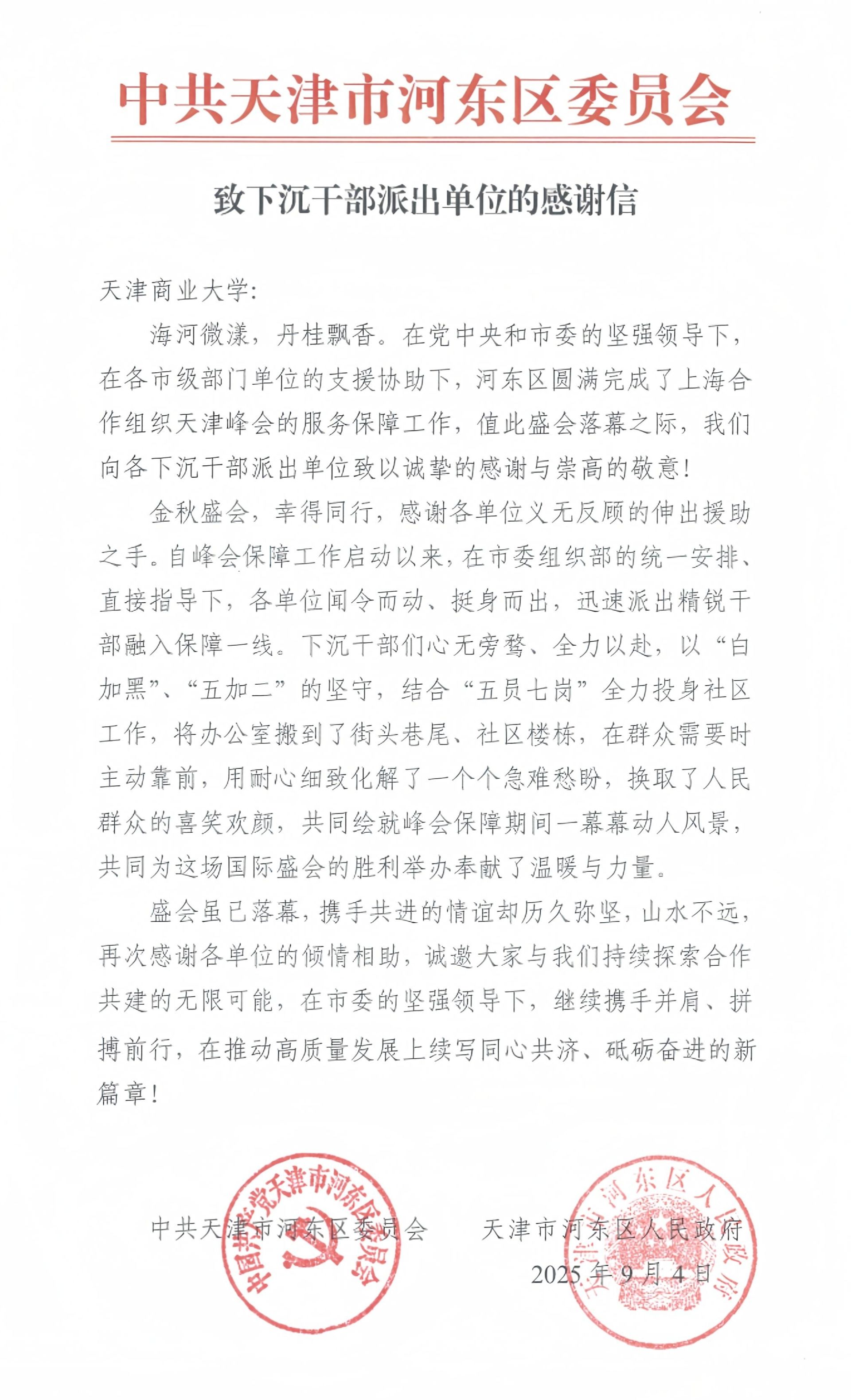 8月31日至9月1日,上海合作组织峰会在天津举行。为保障峰会圆满成功,学校党委积极响应市委助力美丽社区建设号召,第一时间选派26名党员干部教师和100名学生组成下沉和志愿服务队,分赴河东区、河北区和红桥区的10个社区开展志愿服务,配合社区党组织做好服务保障,以实际行动服务群众、保障峰会,展现星空人的责任与担当。