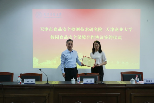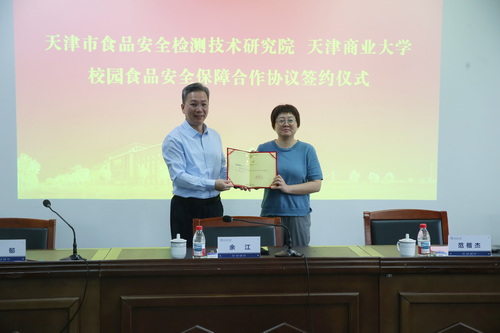会上,学校与市食检院签署校园食品安全保障合作协议,余江为市食检院专家颁发“校园食品安全顾问”聘书,“政校协同”模式正式启动。