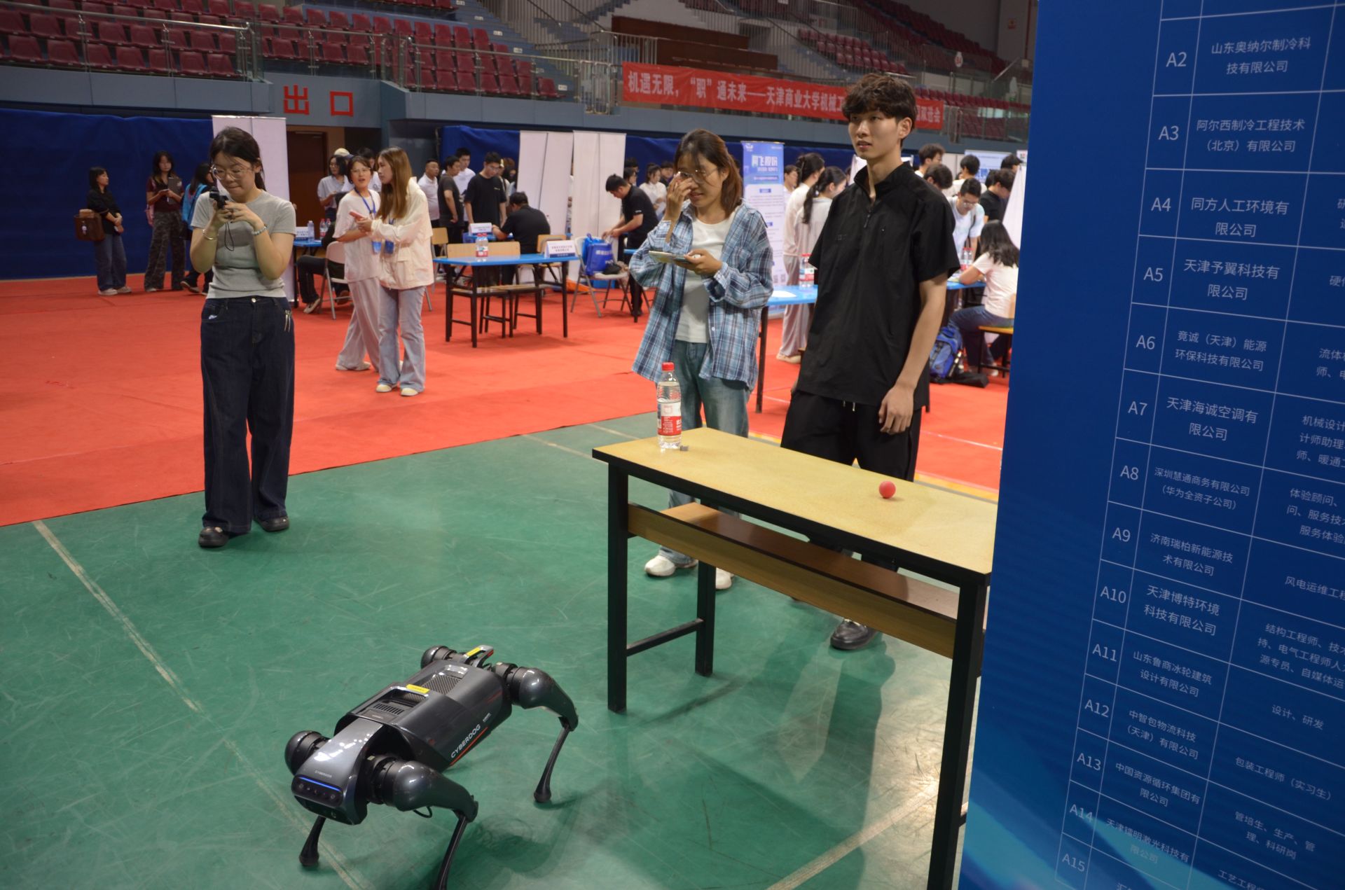 本次双选会在党委学工部的指导下,依托校院两级联动机制,吸引了来自天津、北京、山东、上海、江苏等10余个省市的百余家优质企业参会,企业覆盖学院全部专业涉及的行业领域,共提供就业岗位1000余个,吸引1000余名学生到场参与,累计投递简历3000余份。值得关注的是,机器狗与机器人亮相现场,成为亮眼的科技元素。招聘会现场还特别设置“个人风采打卡区”“求职能量补给站”“边疆人才星火计划咨询台”“迷彩青春启航营”等特色服务站,集成简历优化、面试指导、征兵宣传、后勤保障等一站式就业支持服务,全方位满足毕业生多元化求职需求。