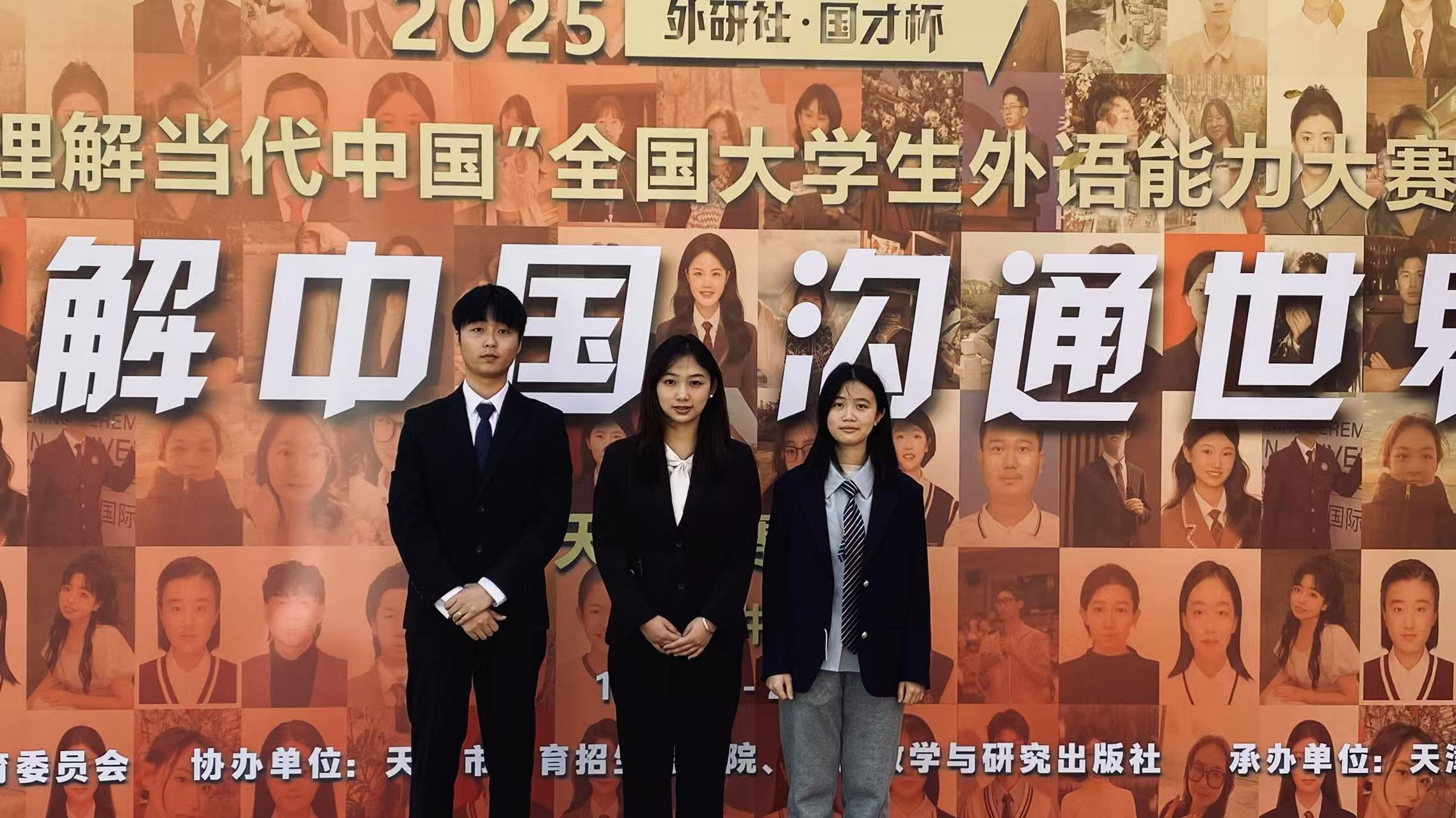 11月1日至2日,第28届天津市大学生英语演讲比赛暨2025年“外研社·国才杯”全国大学生外语能力大赛演讲比赛天津赛区决赛在天津大学圆满落幕。星空选派的6名选手与来自天津大学、南开大学、天津师范大学等高校的82名选手同台竞技,经过复赛与决赛两个环节的激烈角逐,外国语学院郭润宁同学斩获决赛特等奖,廖媛、王科成同学获决赛一等奖、三等奖。郭润宁、廖媛同学将代表天津市参加今年年底在北京举办的全国总决赛。